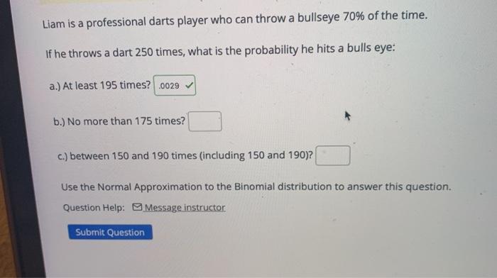 Solved Liam Is A Professional Darts Player Who Can Throw A Chegg Com