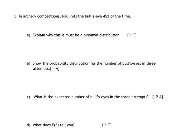 Solved 5 In Archery Competitions Paul Hits The Bull S Eye Chegg Com